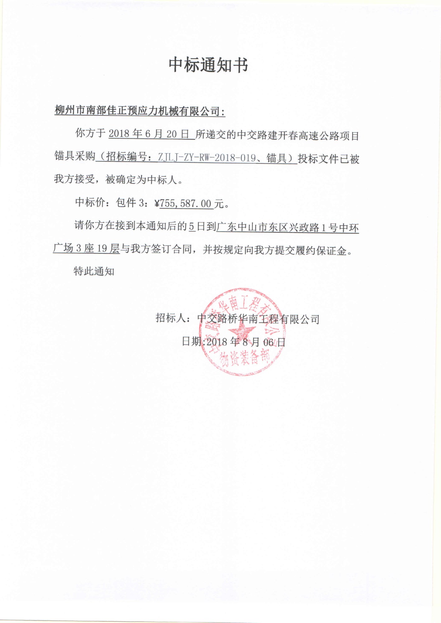 開春3包中標通知書
