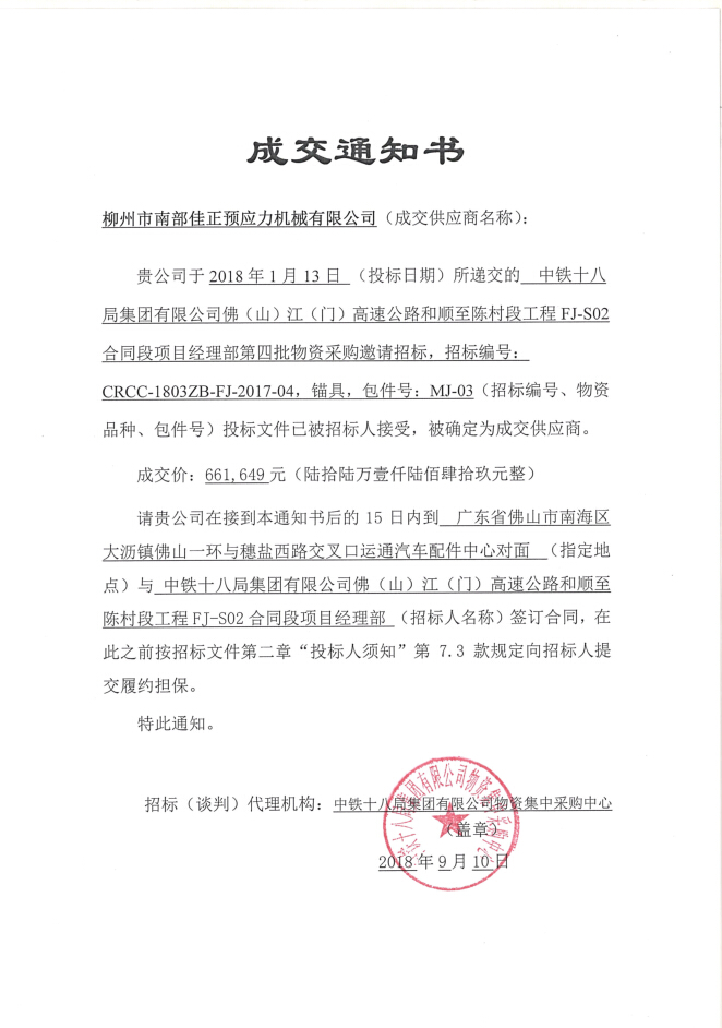 中鐵十八局佛江高速M(fèi)J-03柳州市南部佳正